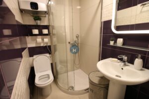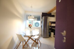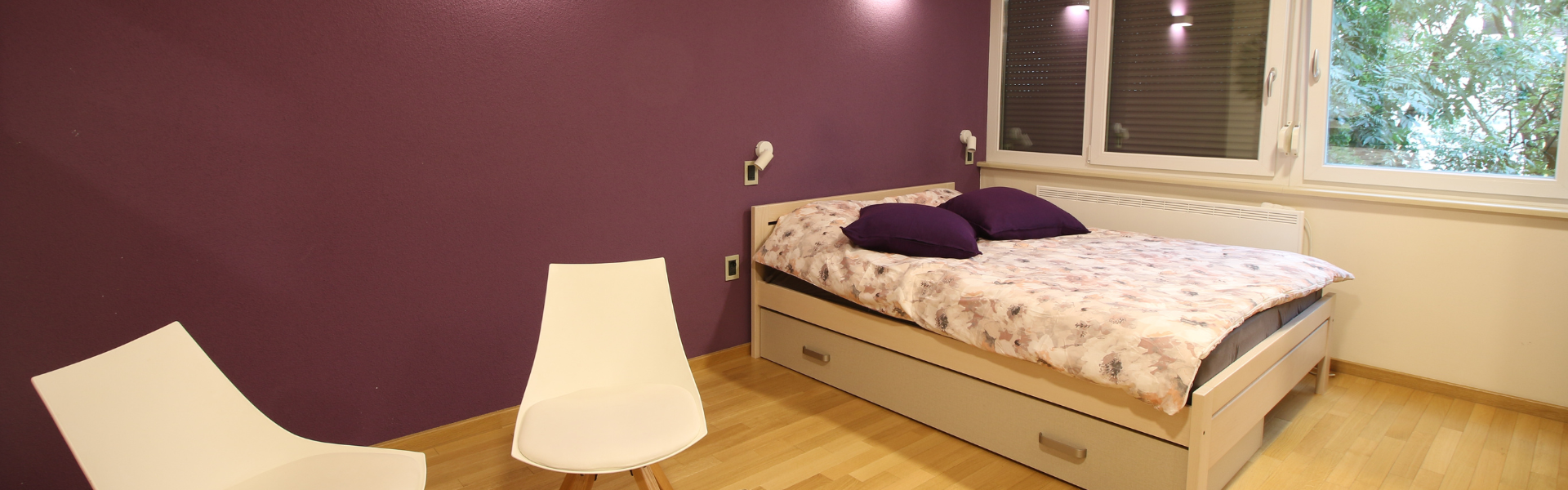 The apartment is on the third floor of a building with no elevator. It consists of one bedroom, one living room, and one bathroom. The bedroom includes a bed, a closet, a desk, and a chair, and comes with bed linen. All additional amenities are listed under the facilities section.