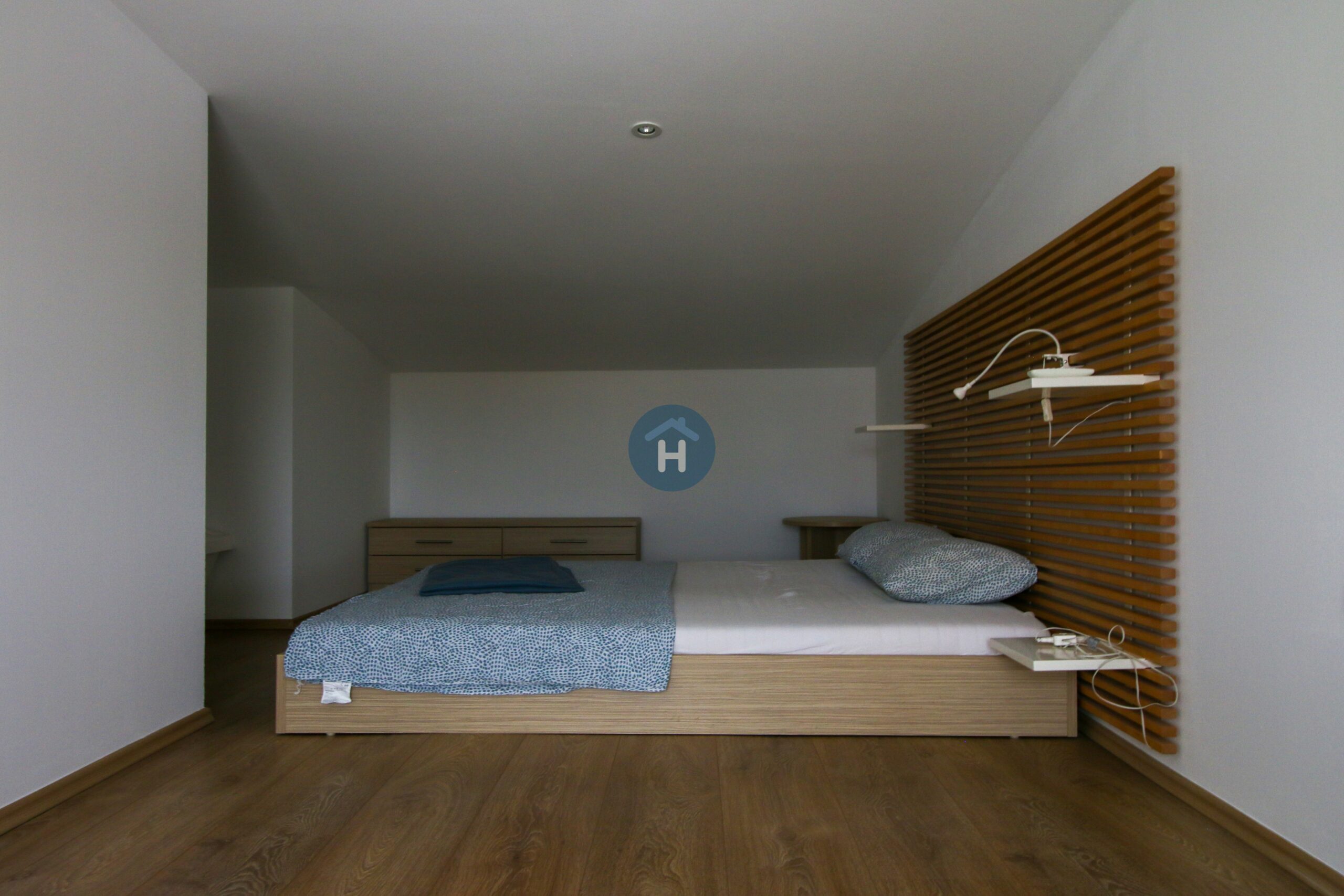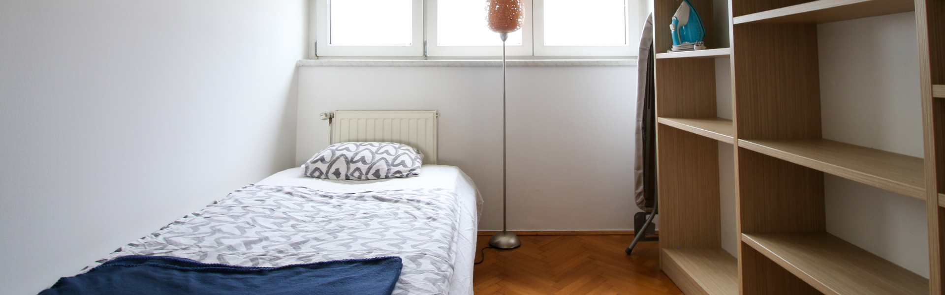 The apartment is on the third floor of a building with no elevator. It consists of three bedrooms, one living room, and one bathroom. The bedrooms include a bed and a closet, while the desks and chairs are located in the living area. The bedrooms come with bed linen and towels. All additional amenities are listed under the facilities section.