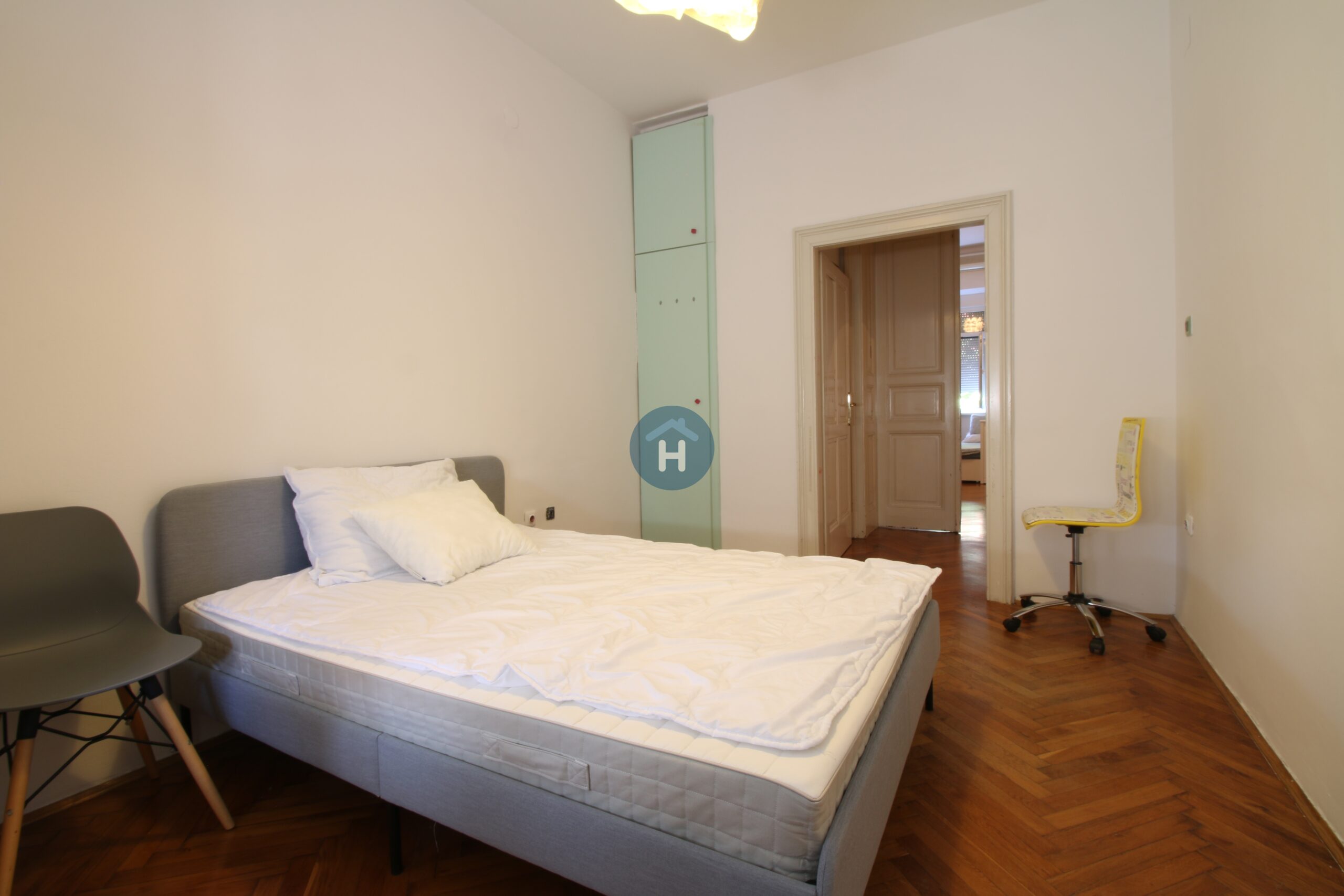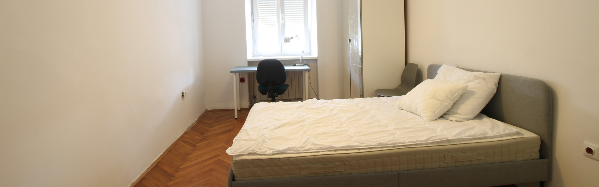 The apartment is on the second floor of a building with no elevator. It consists of two bedrooms and one bathroom. The bedrooms include a bed, a closet, a desk, and a chair, and come with bed linen and towels. All additional amenities are listed under the facilities section.