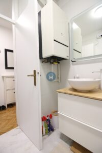 The apartment is on the first floor of a building with no elevator. It consists of one bedroom, one living room, and one bathroom. The bedroom includes a bed, a closet, a desk, and a chair, and comes with bed linen and towels. All additional amenities are listed under the facilities section.