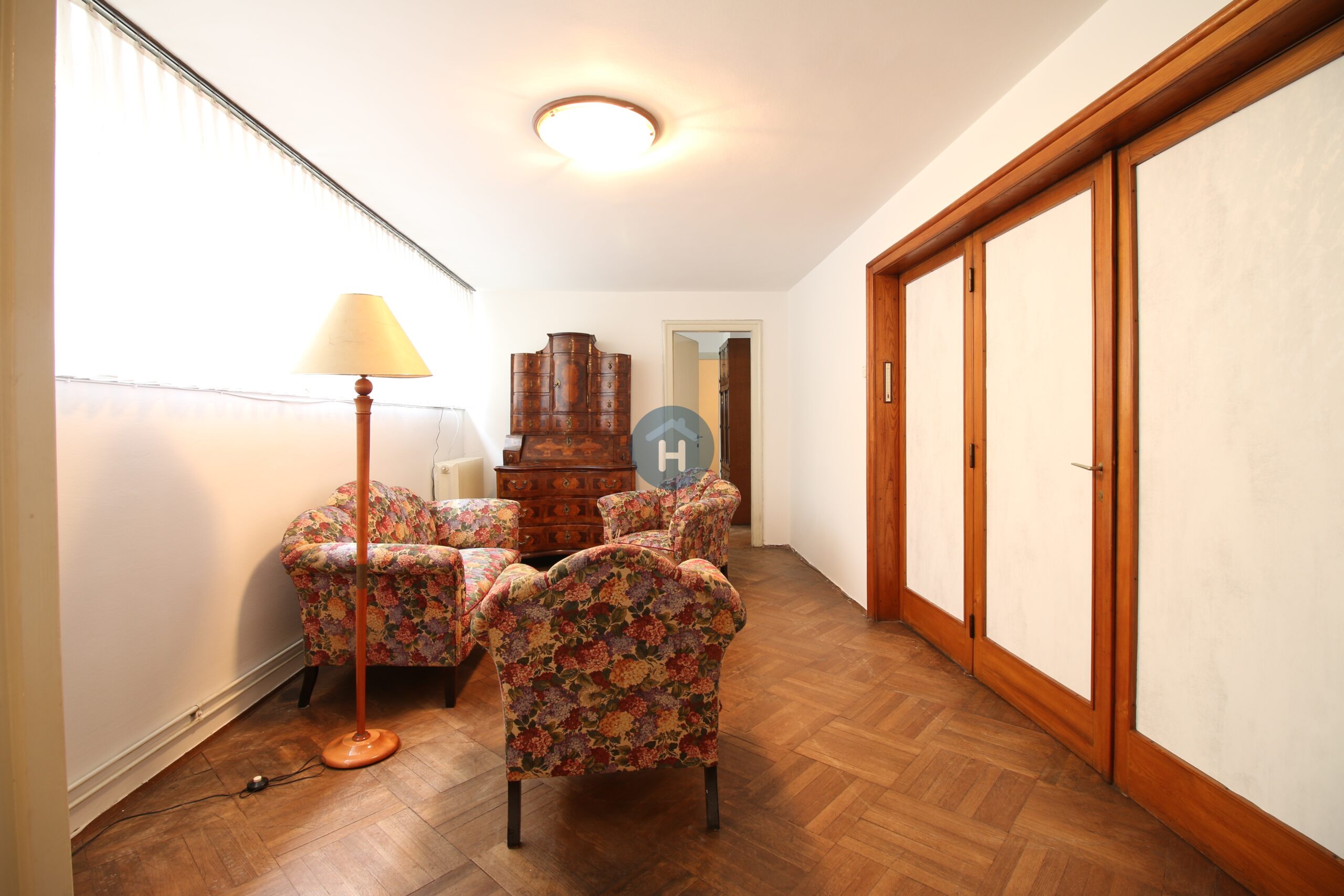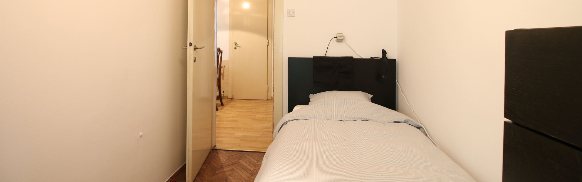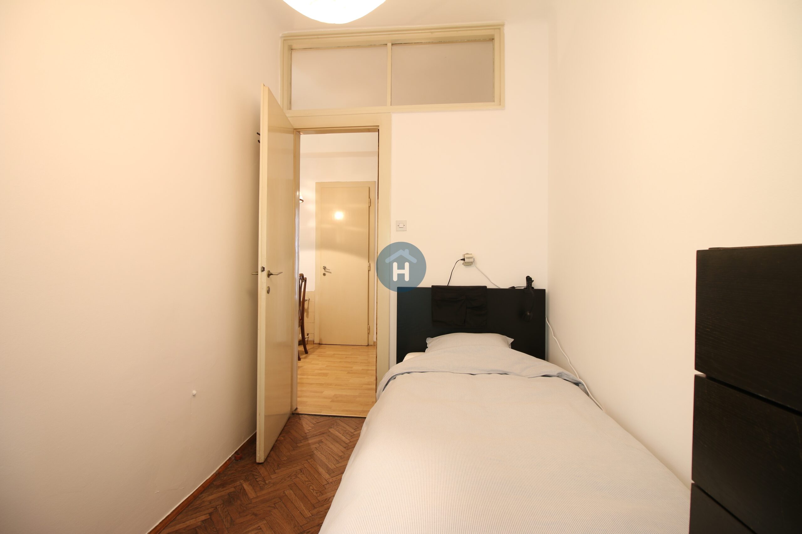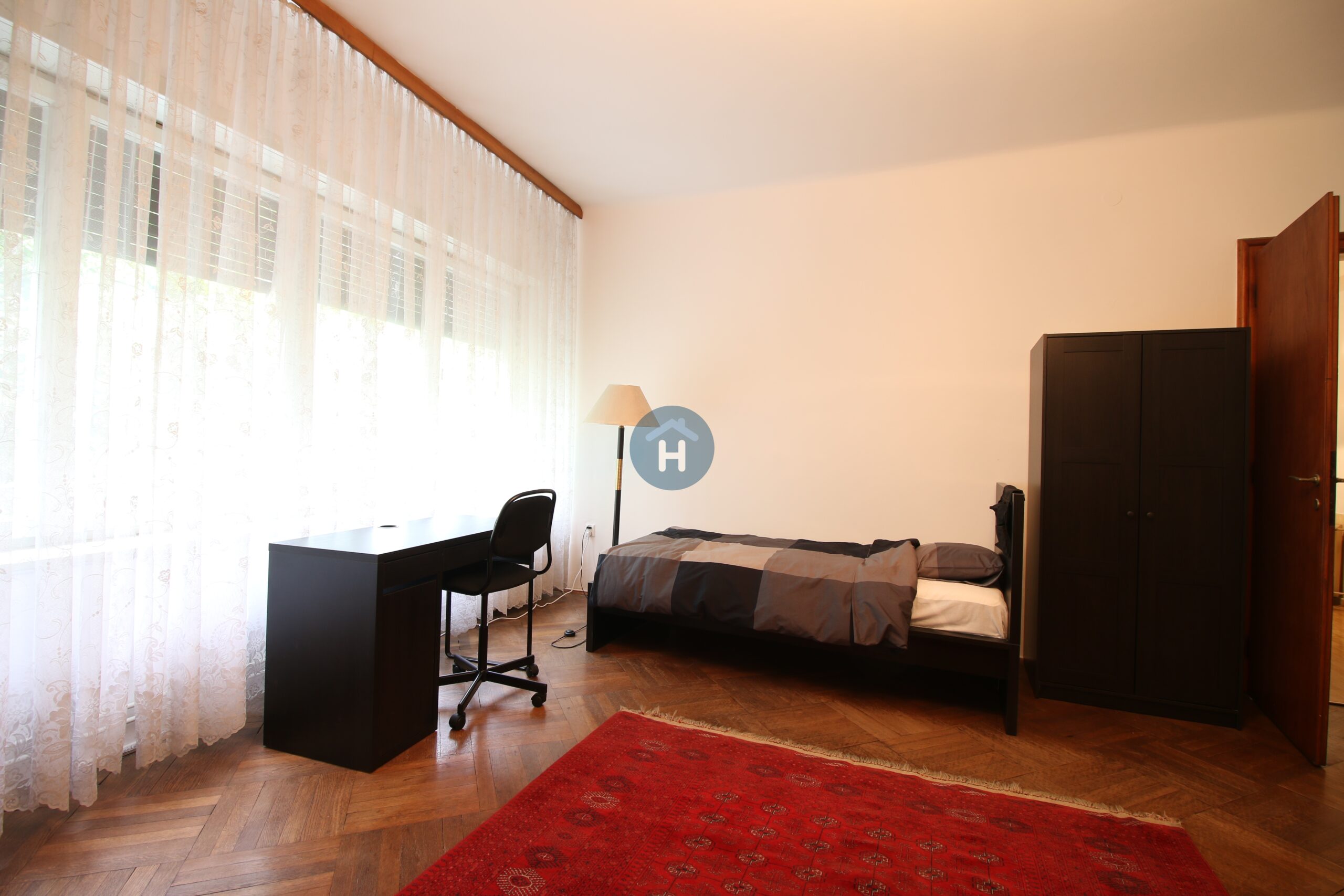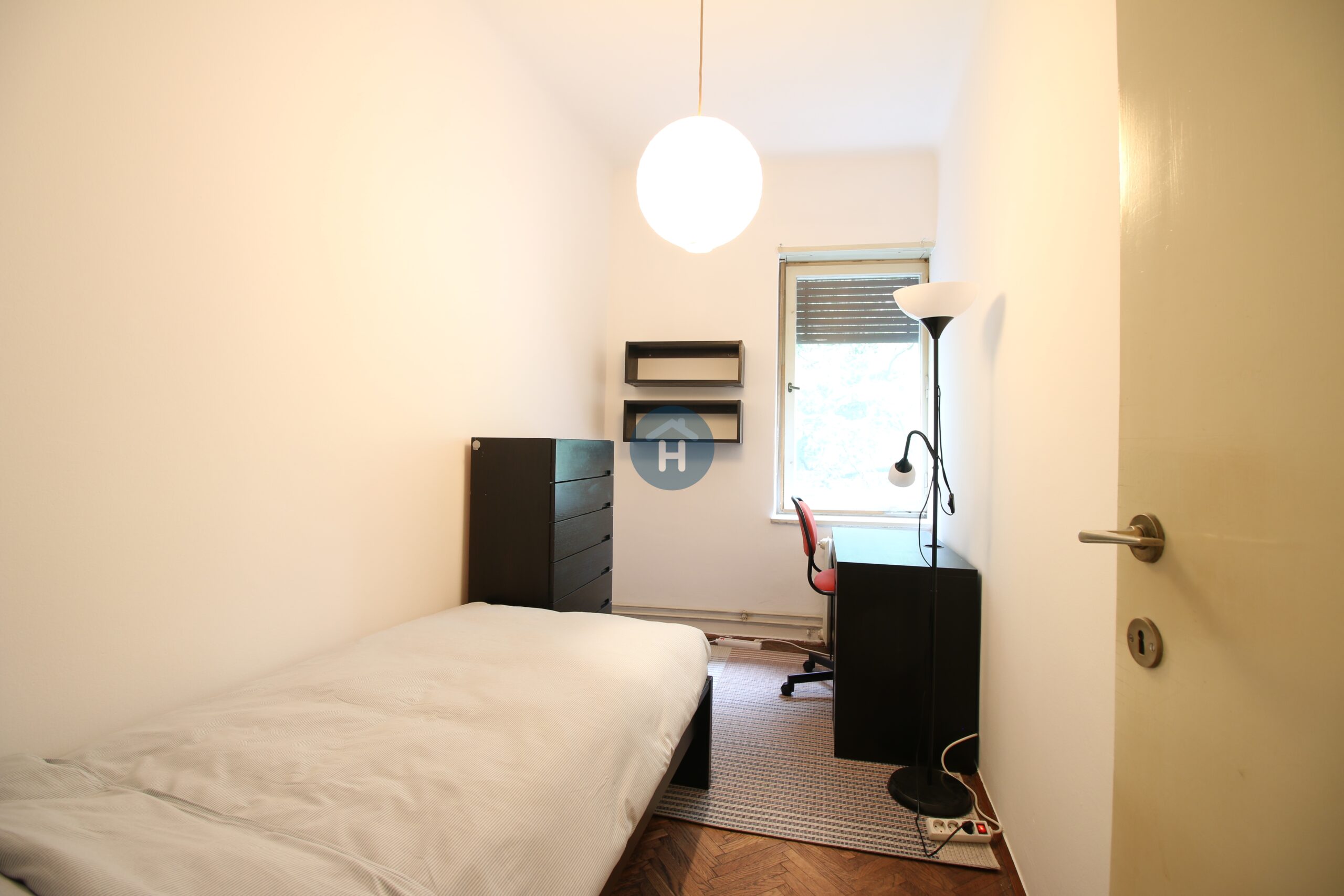 The apartment is on the second floor of a building with an elevator. It consists of four bedrooms, one living room, and one bathroom. The bedrooms include a bed, a closet, a desk, and a chair, and come with bed linen and towels. All additional amenities are listed under the facilities section.