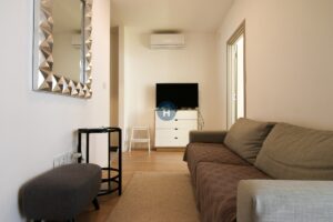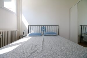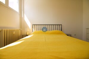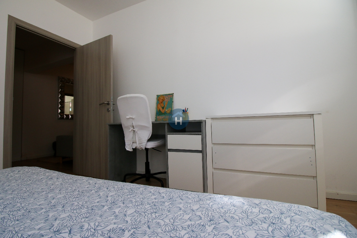 The apartment is on the first floor of a building with an elevator. It consists of two bedrooms, one bathroom, and a living room. Each bedroom includes a bed, a closet, a desk, and a chair, and comes with bed linen and towels. All additional amenities are listed under the facilities section.