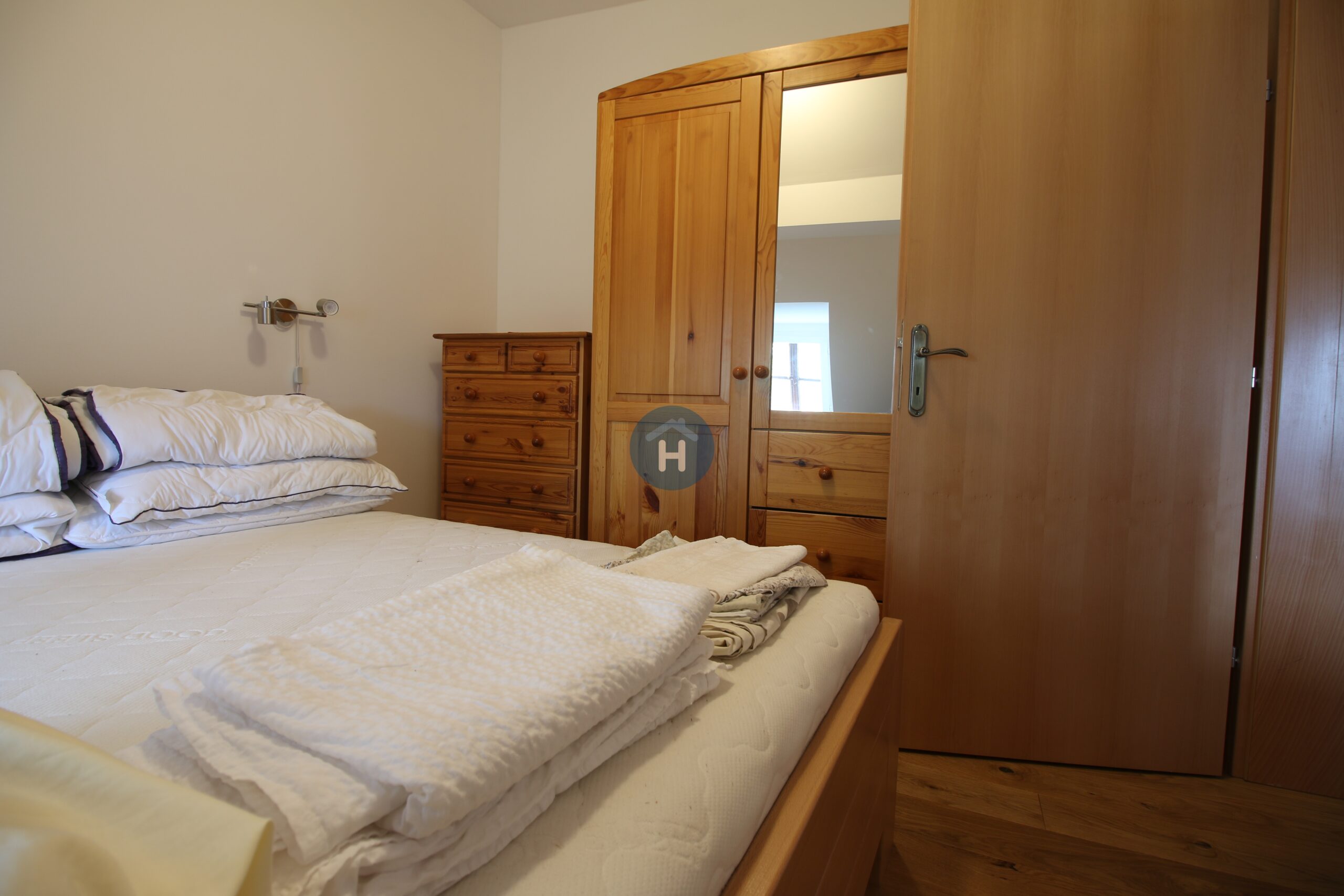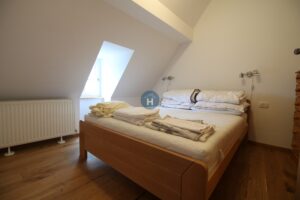 The apartment is on the second floor of a building with no elevator. It consists of one bedroom, one living room, and one bathroom. The bedroom includes a bed and a closet, while a desk and a chair are located in the living room area. The apartment comes with bed linen and towels. All additional amenities are listed under the facilities section.