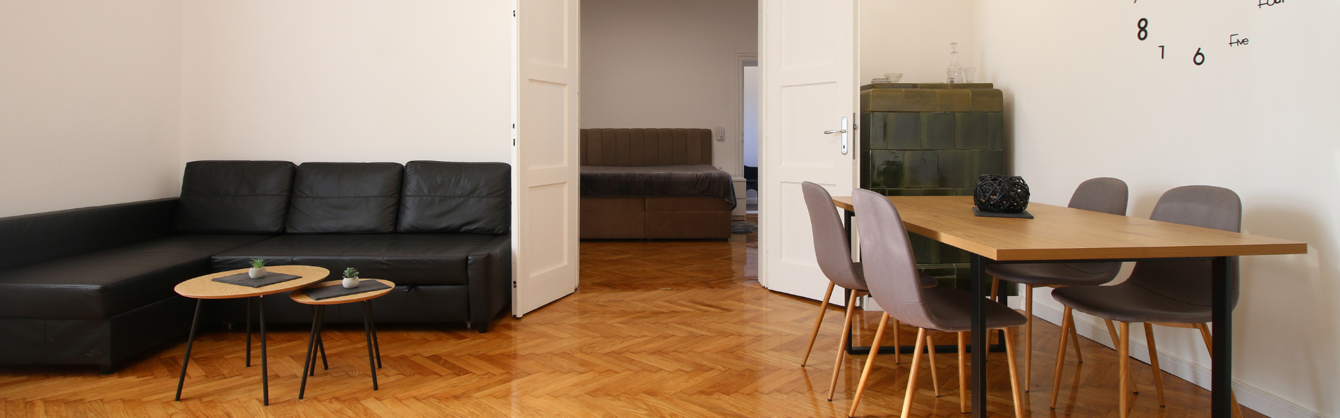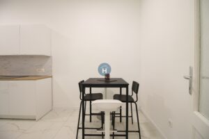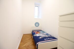 The apartment is on the first floor of a building with no elevator. It consists of two bedrooms, one living room, and one bathroom. The bedrooms include a bed and a closet, while a desk and a chair are located in the living room area. The apartment comes with bed linen and towels. All additional amenities are listed under the facilities section.