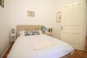 The apartment is on the first floor of a building with no elevator. It consists of two bedrooms, one living room, and one bathroom. One of the bedrooms has a bed, a closet, a desk, and a chair, while the other one has a bed and a closet. Both bedrooms come with bed linen and towels. All additional amenities are listed under the facilities section.