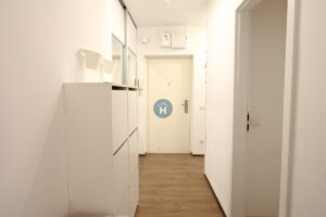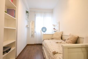 The apartment is on the third floor of a building with no elevator. It consists of two bedrooms, a living room, and one bathroom. One bedroom has a single bed, while the other has a double bed. Both bedrooms have a closet, a desk, and a chair, and they come with bed linen and towels. All additional amenities are listed under the facilities section.