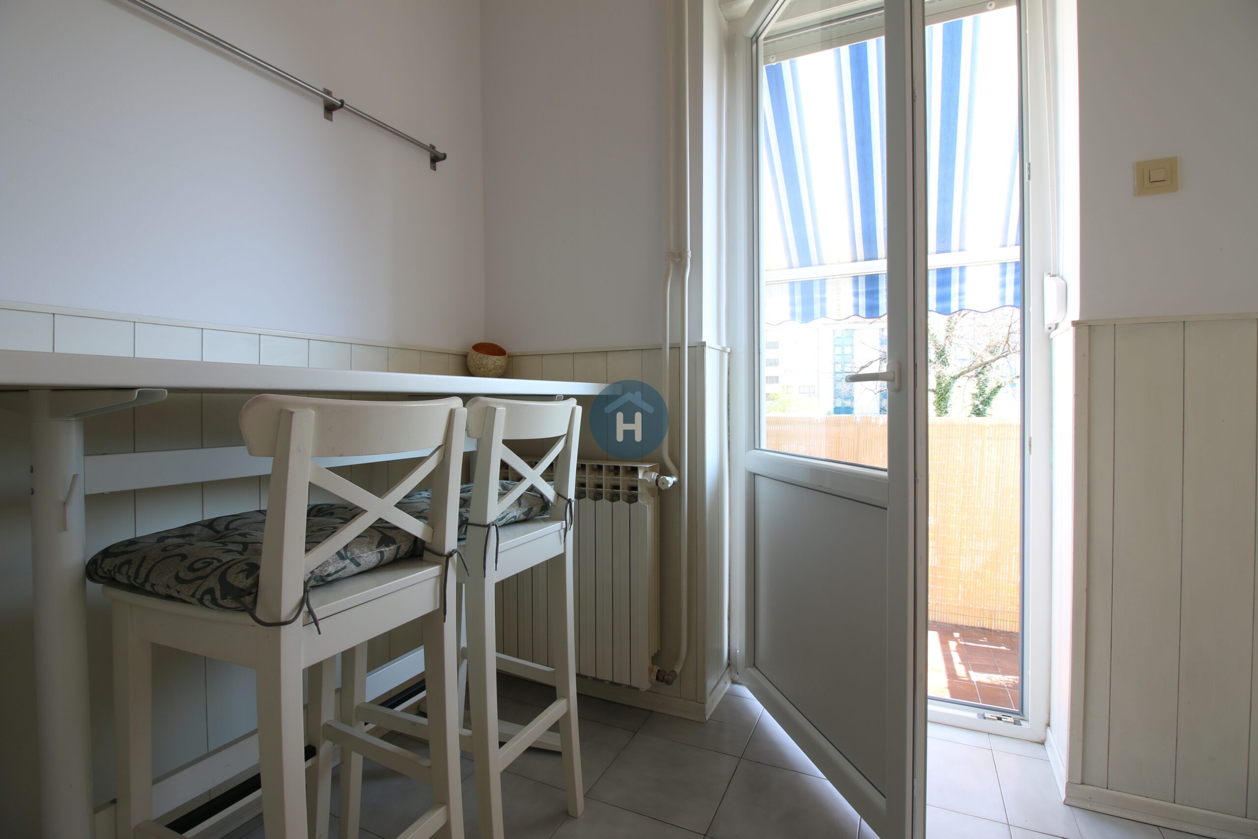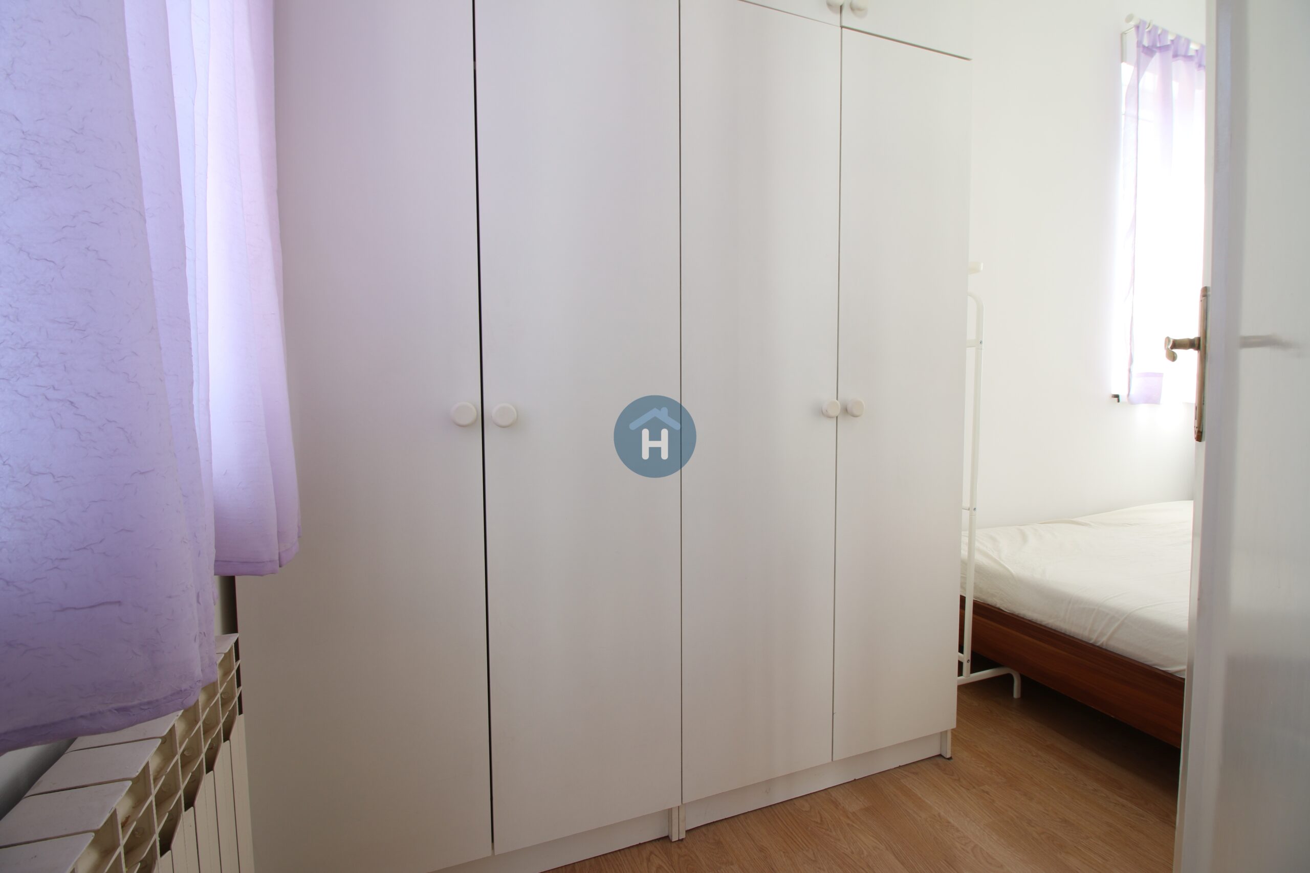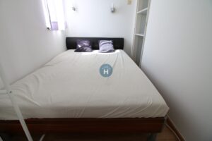 The apartment is on the second floor of a building with no elevator. It consists of one bedroom, one living room, and one bathroom. The bedroom includes a bed and a closet, while the desk and chair are located in the kitchen area. The apartment comes with bed linen and towels. All additional amenities are listed under the facilities section.