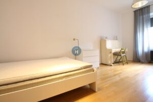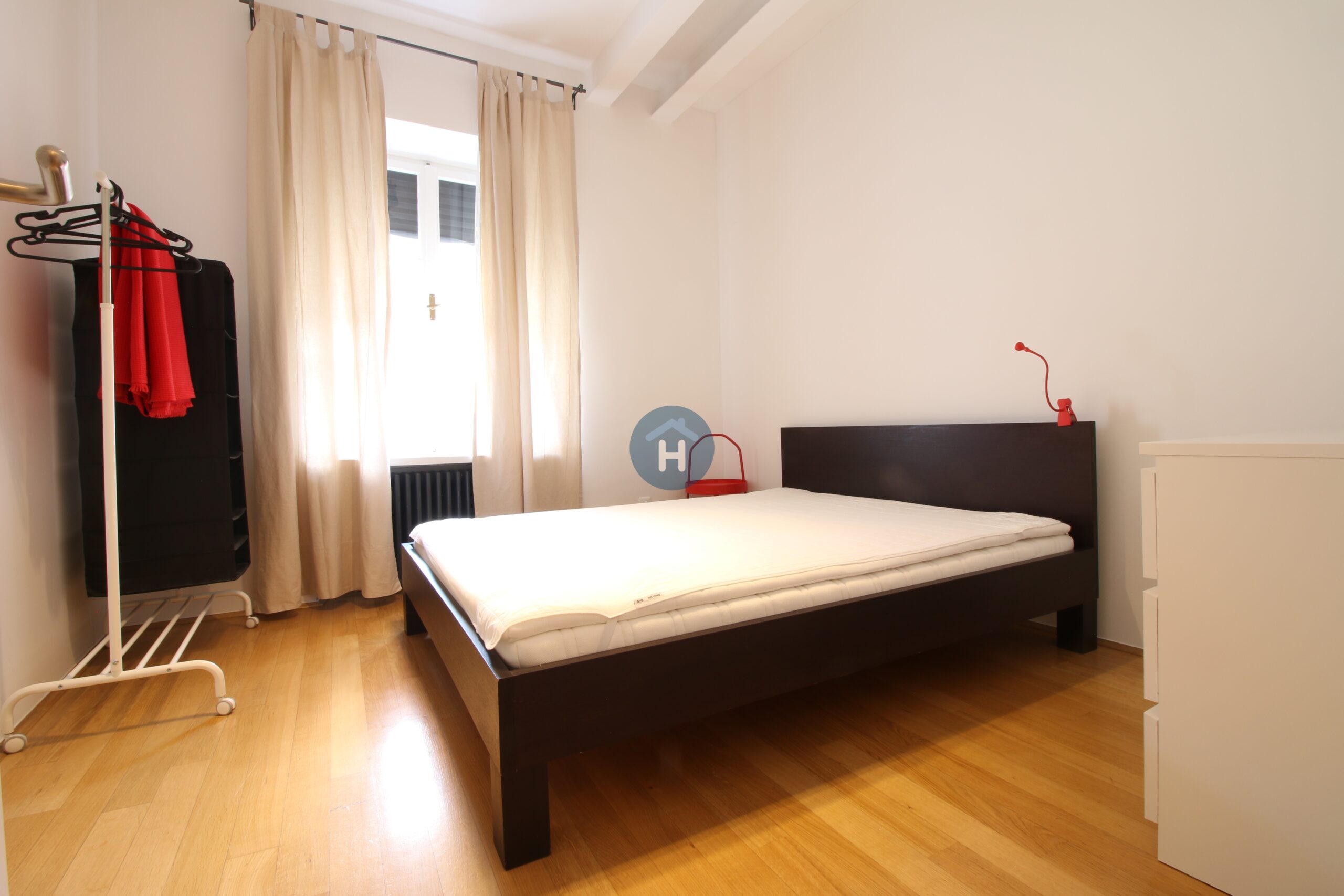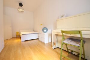 The apartment is on the second floor of a building with no elevator. It consists of two bedrooms, one living room, and one bathroom. The bedrooms include a bed, while the closet is in the hallway, and the desk and chair are in the living room area. The apartment comes with bed linen and towels. All additional amenities are listed under the facilities section.