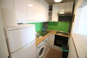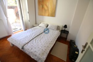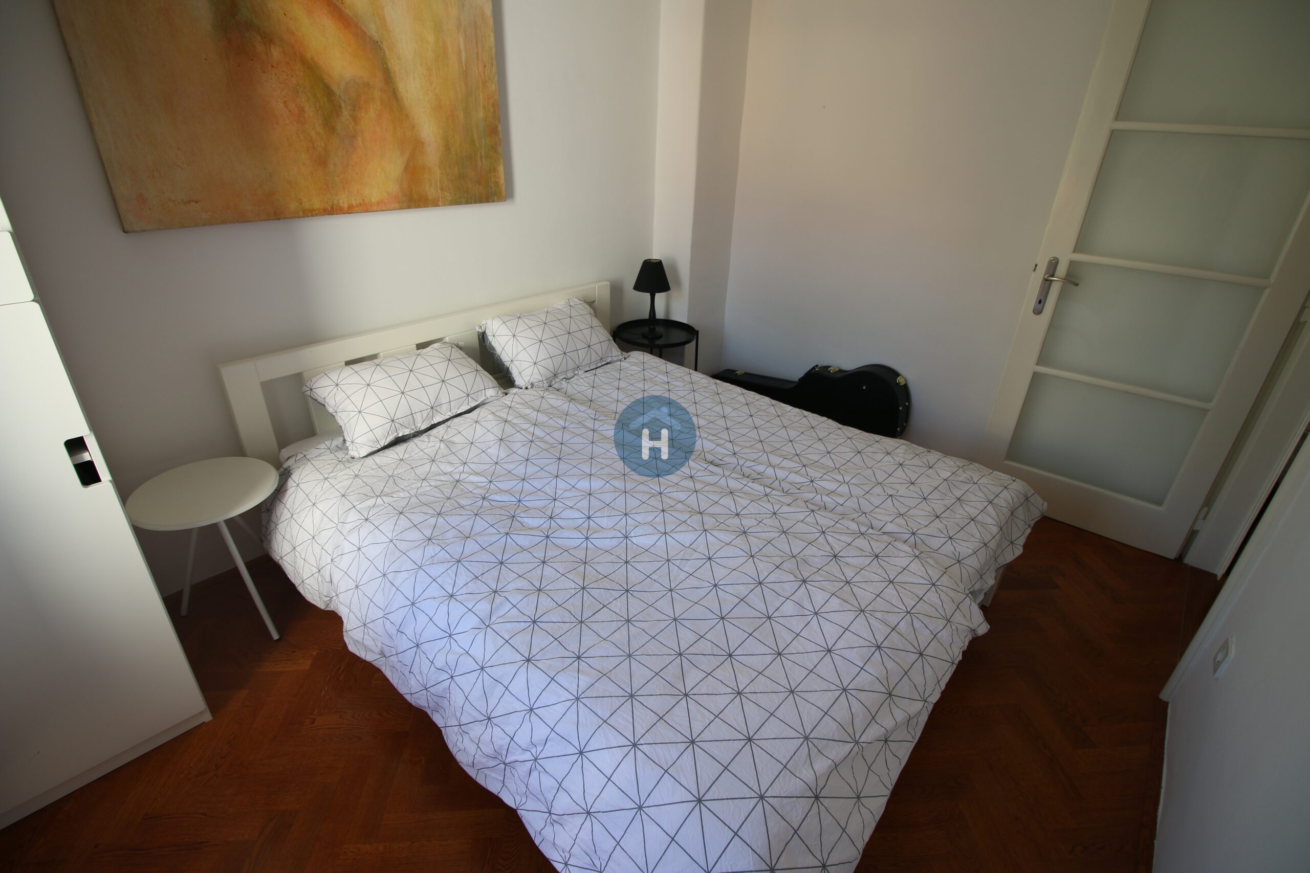 The apartment is on the third floor of a building with an elevator. It consists of one bedroom, one living room, and one bathroom. The bedroom includes a bed, while a closet is located in the hallway and a desk and a chair are located in the living room. The apartment comes with bed linen and towels. All additional amenities are listed under the facilities section.