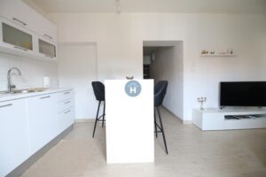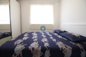 The apartment is on the second floor of a building with no elevator. It consists of one bedroom, one living room, and one bathroom. The bedroom includes a bed and a closet, while a desk and chair are in the living room area. The apartment comes with bed linen and towels. All additional amenities are listed under the facilities section.