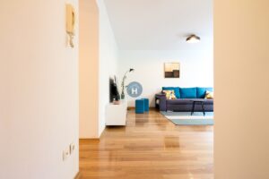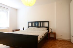 The apartment is on the second floor of a building without an elevator. It consists of two bedrooms, a living room, and a bathroom. Each bedroom includes a bed and a closet. All additional amenities are listed under the facilities section.