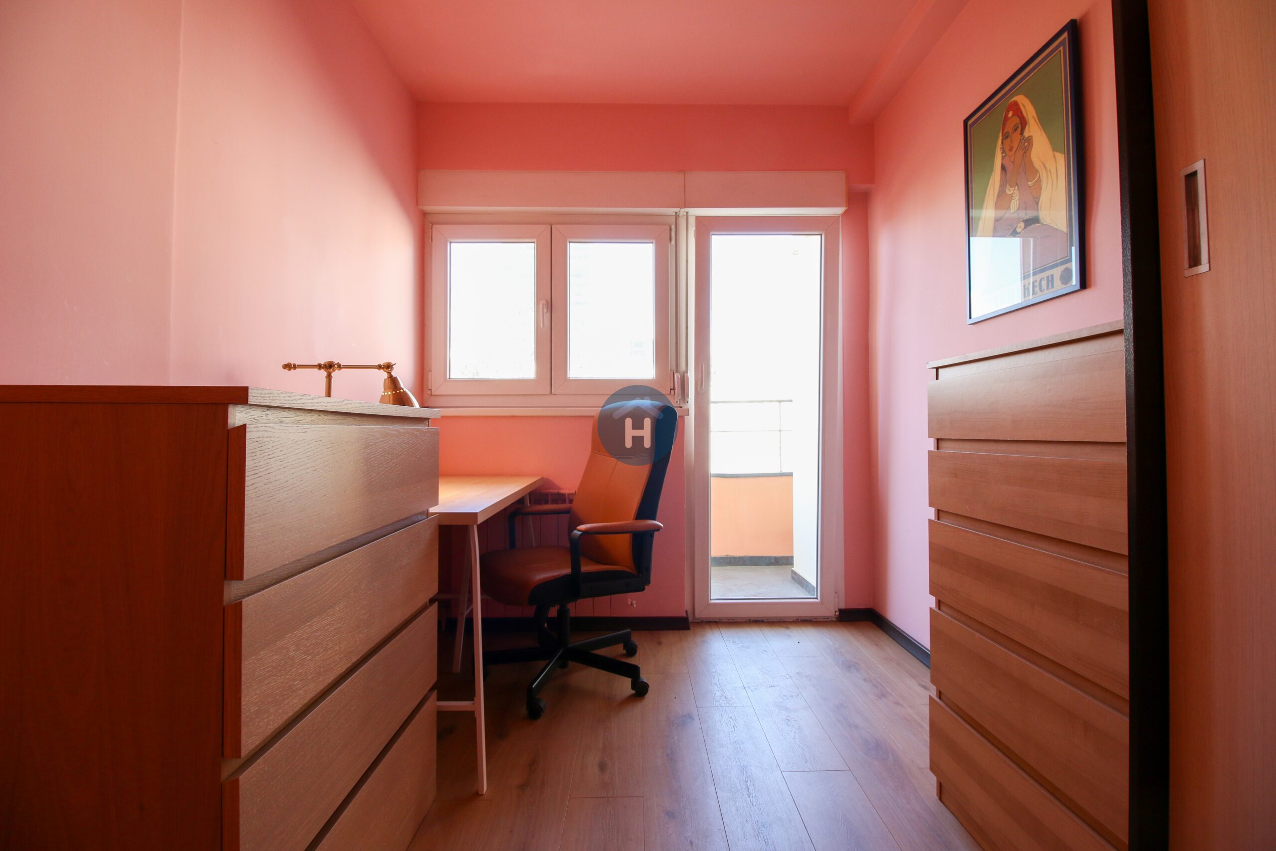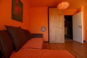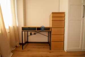 The apartment is on the third floor of a building with an elevator. It consists of two bedrooms, one living room, and one bathroom. The bedrooms include a bed, a closet, a desk, and a chair, and come with bed linen and towels. All additional amenities are listed under the facilities section.
