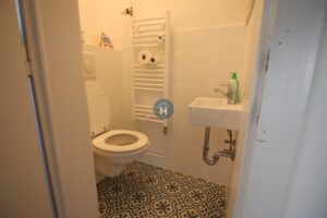 The apartment is on the third floor of a building with an elevator. It consists of one bedroom, one living room, and one bathroom. The bedroom includes a bed and a closet, while a desk and chair are in the kitchen area. The apartment comes with bed linen and towels. All additional amenities are listed under the facilities section.