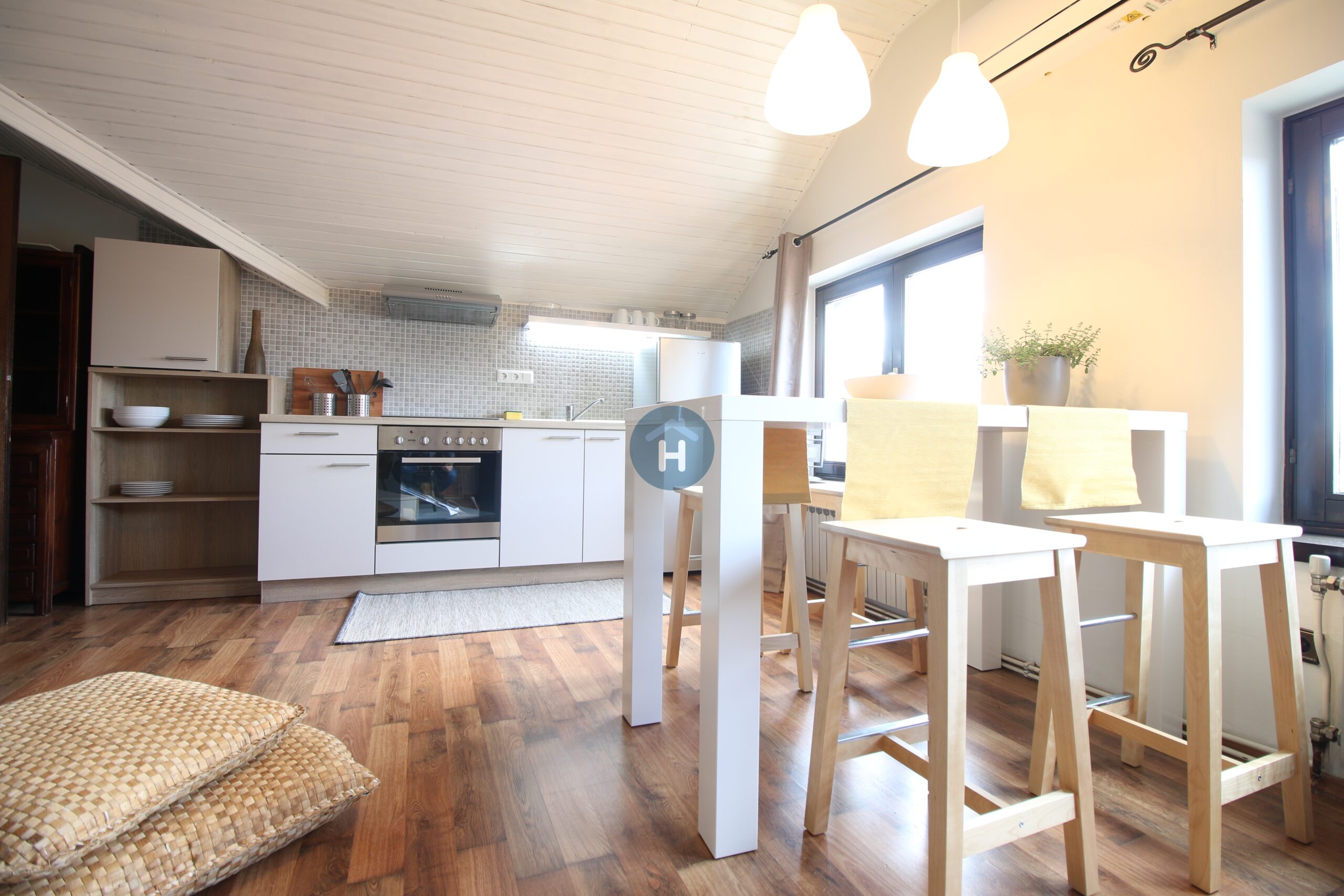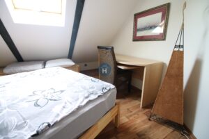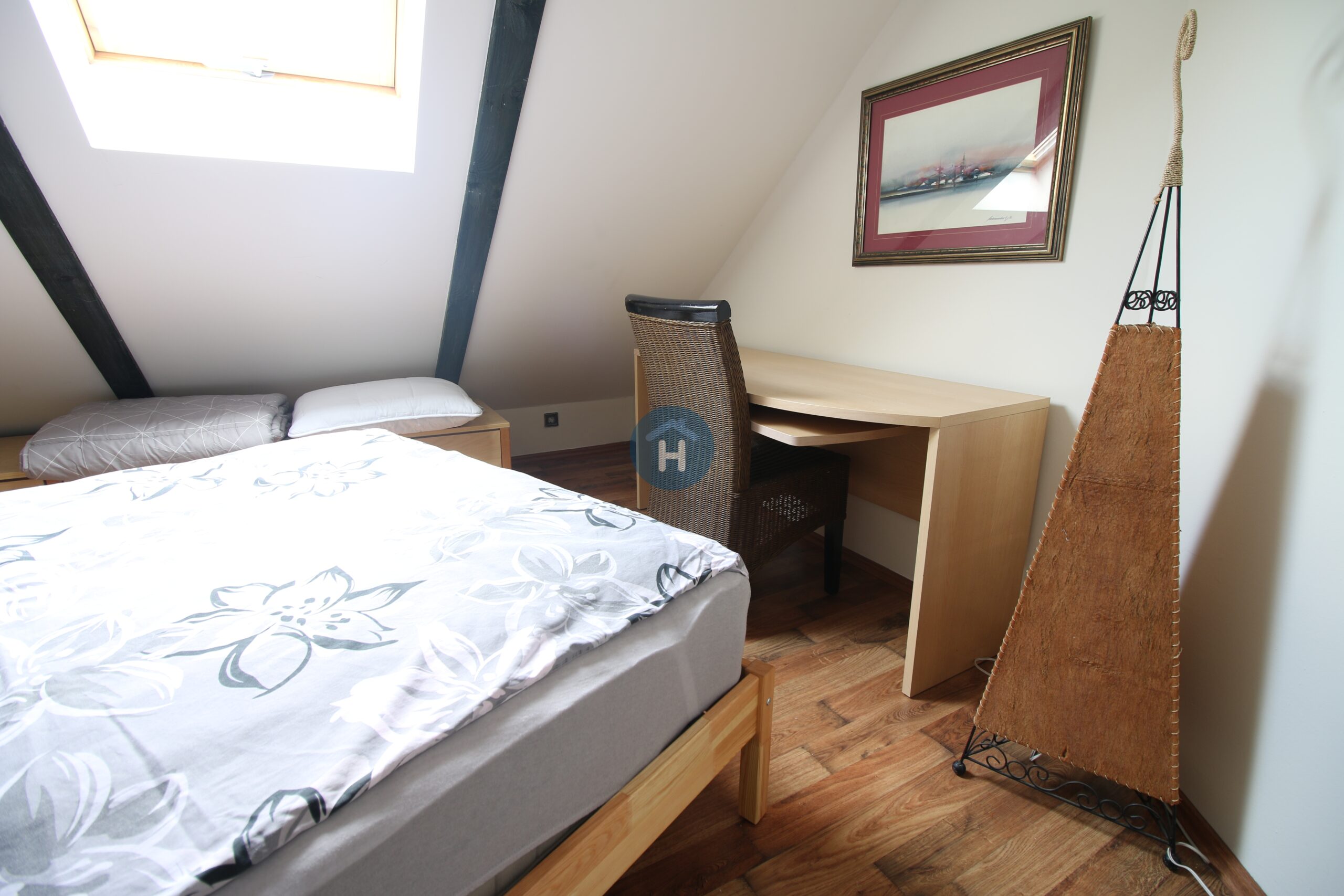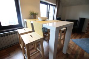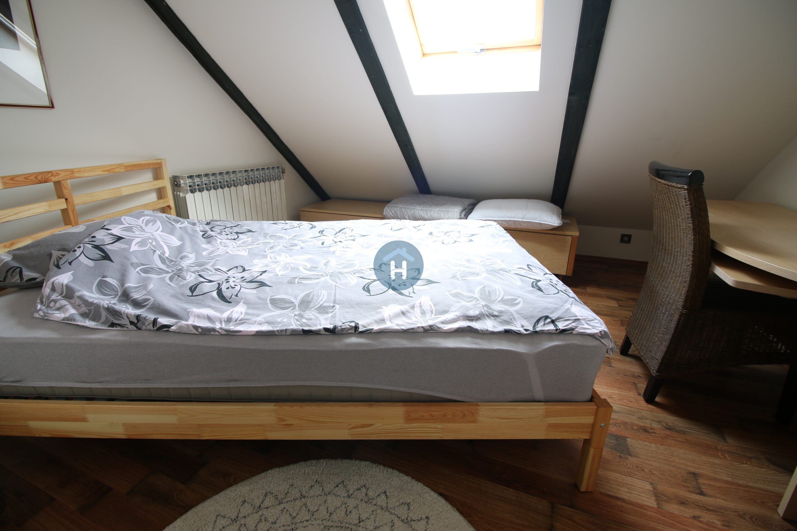 The apartment is on the third floor of a building with no elevator. It consists of two bedrooms, one living room, and one bathroom. One of the bedrooms includes a bed, a closet, a desk, and a chair, while the other has a bed and a closet, with a desk and a chair located in the living room. The apartment comes with bed linen and towels. All additional amenities are listed under the facilities section.