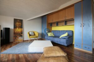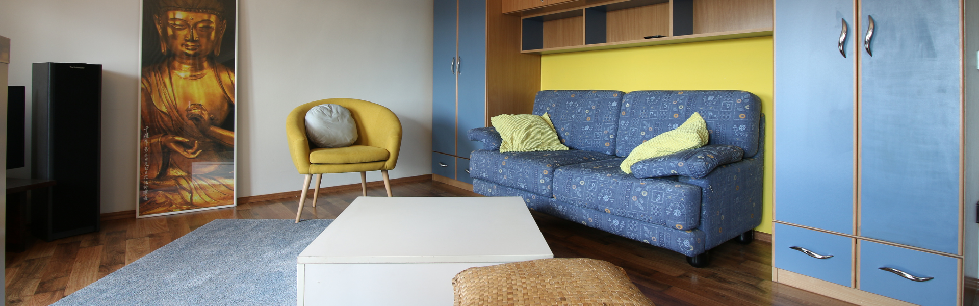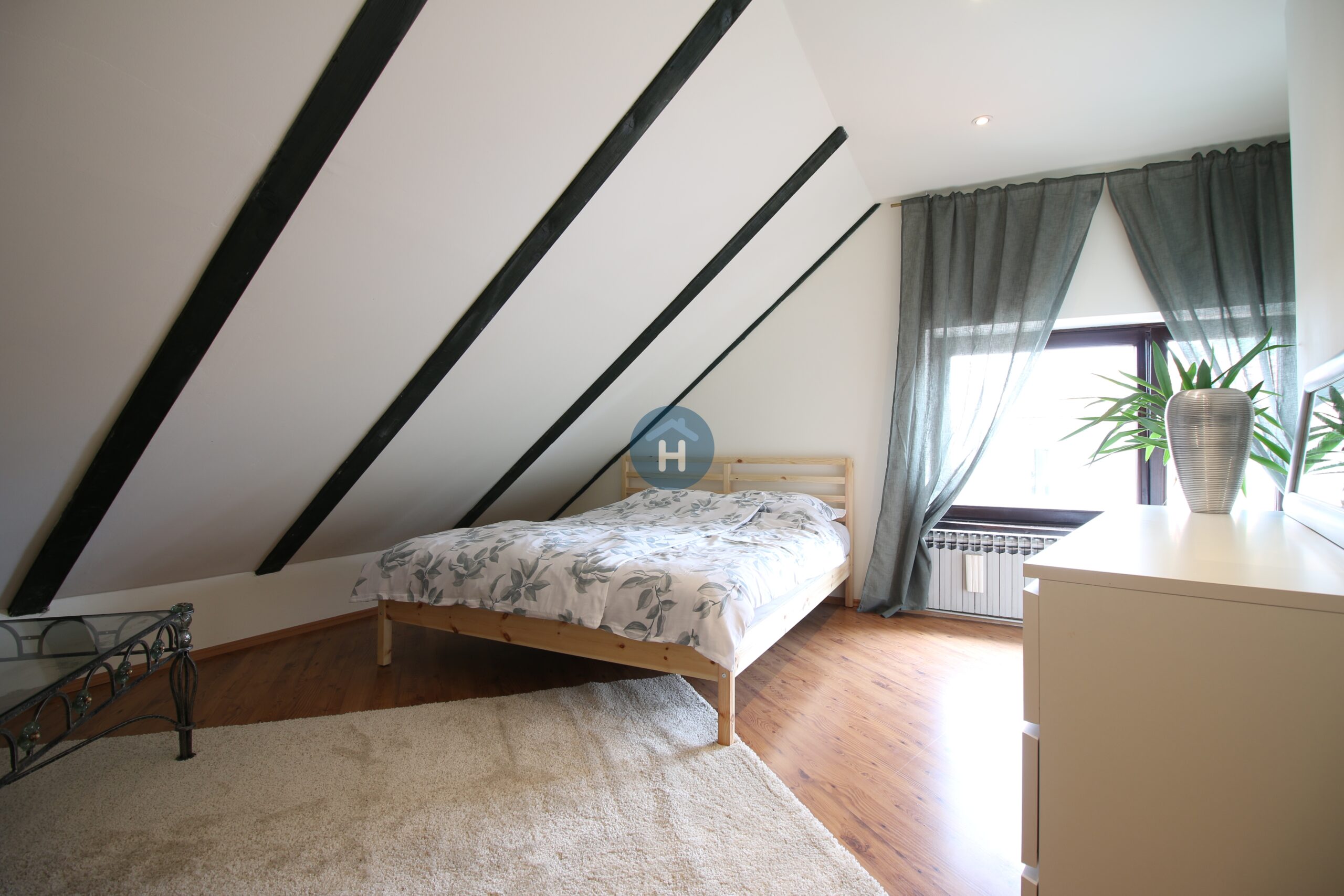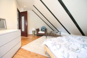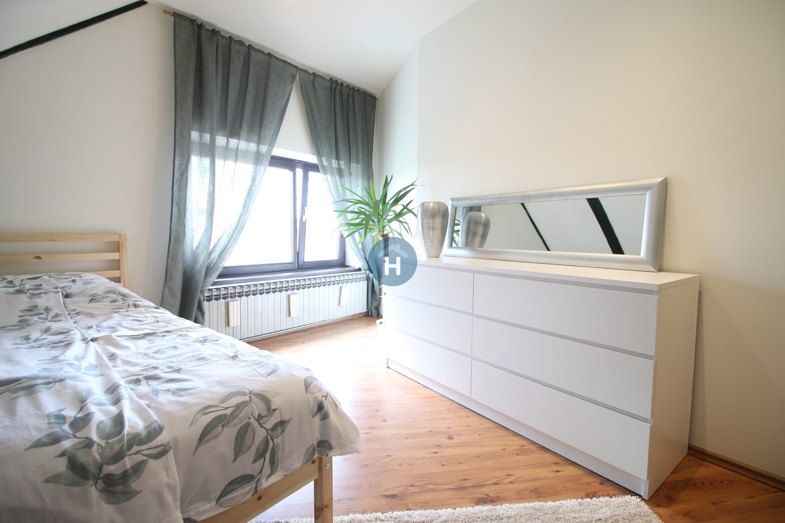 The apartment is on the third floor of a building with no elevator. It consists of two bedrooms, one living room, and one bathroom. One of the bedrooms includes a bed, a closet, a desk, and a chair, while the other has a bed and a closet, with a desk and a chair located in the living room. The apartment comes with bed linen and towels. All additional amenities are listed under the facilities section.