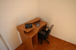 The room is on the first floor of a house with no elevator. It consists of a sleeping area and a shared bathroom. The sleeping area includes a bed, a closet, a desk, and a chair. The room comes with bed linen and towels. All additional amenities are listed under the facilities section.