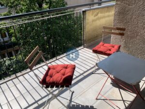 The studio is on the fourth floor of a building with no elevator. It consists of a living room, one bathroom, and a sleeping area. The sleeping area includes a bed and a closet, while a desk and a chair are located in the dining area. The studio comes with bed linen and towels. All additional amenities are listed under the facilities section.