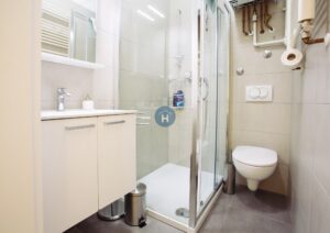 The studio is on the upper ground floor of a building with no elevator. It consists of a sleeping area, a living room, and one bathroom. The sleeping area includes a bed and a closet, while a desk and a chair are located in the living room area. The studio comes with bed linen and towels. All additional amenities are listed under the facilities section.