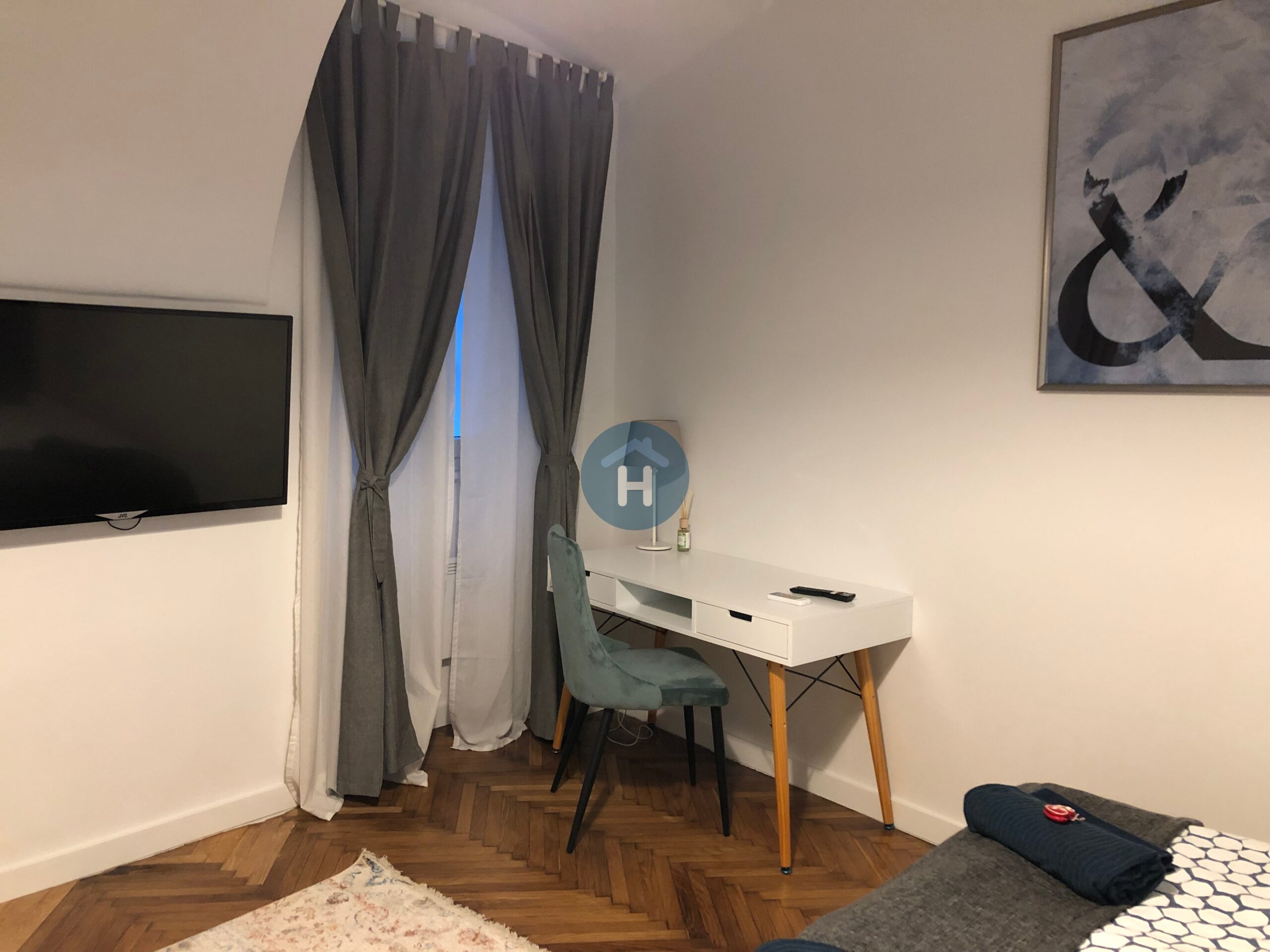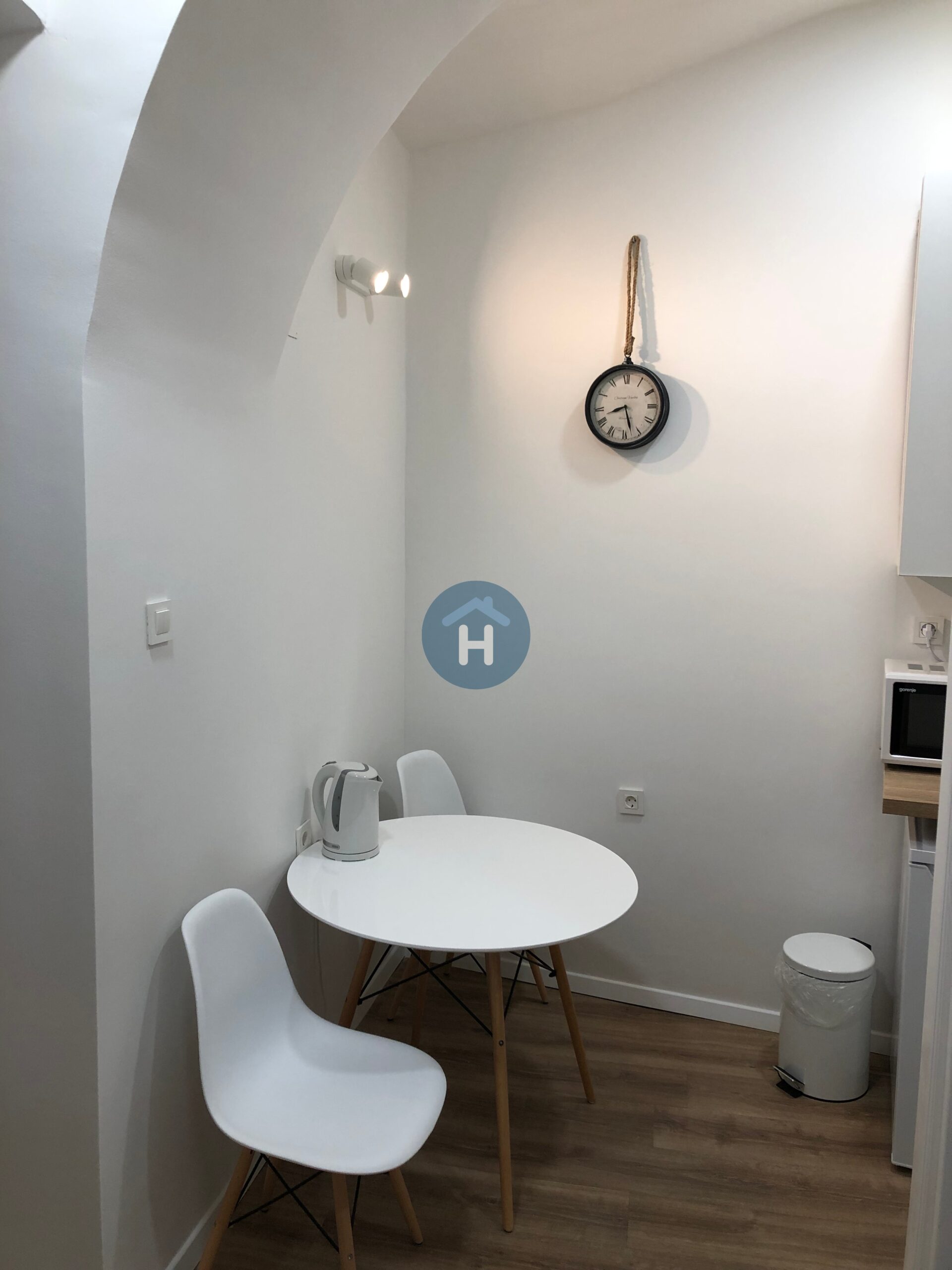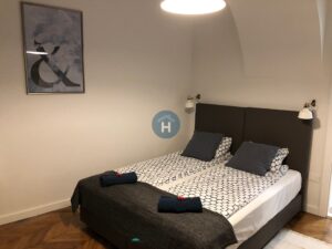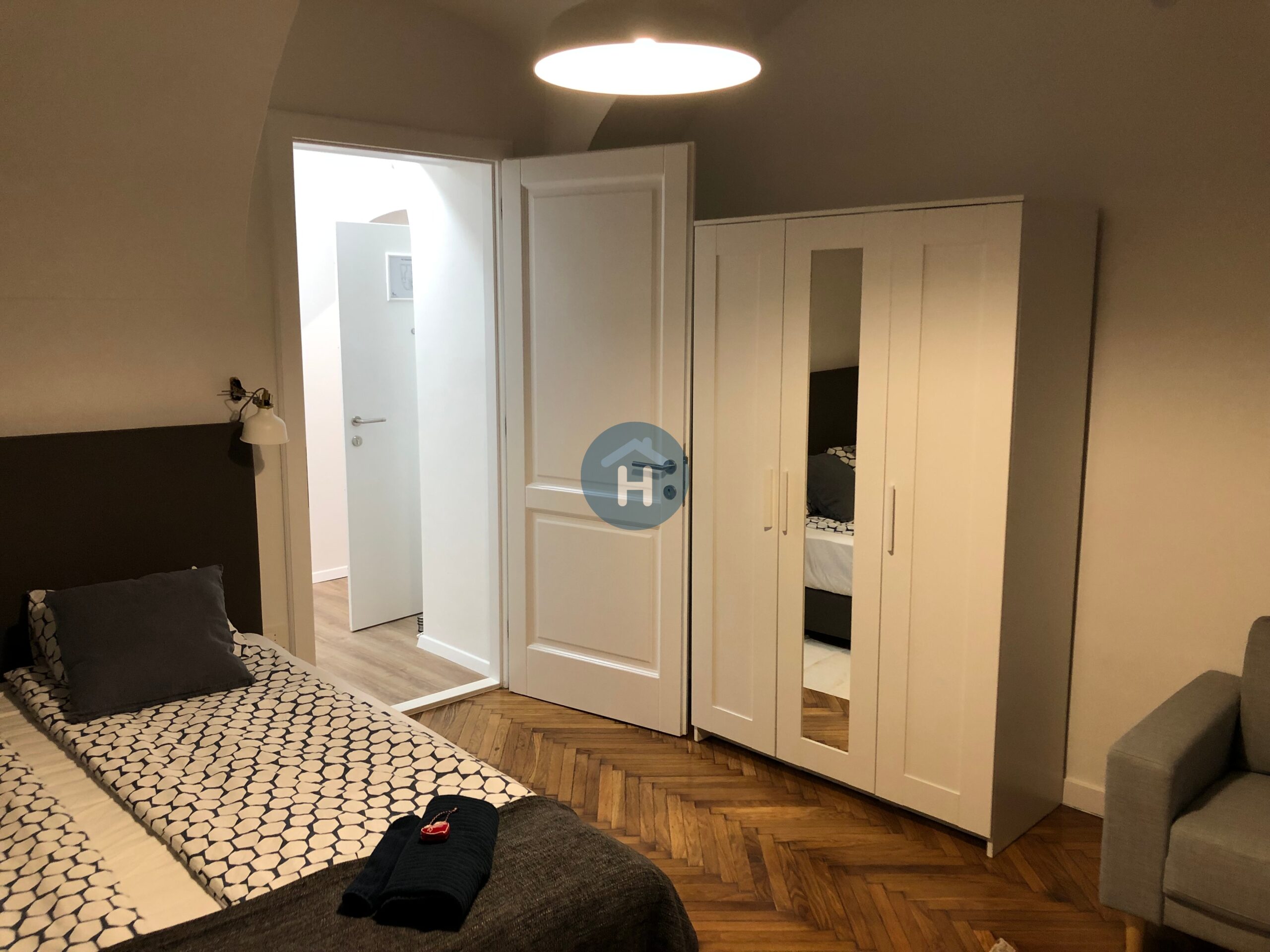 The studio is on the ground floor of a building with no elevator. It consists of a sleeping area and one bathroom. The sleeping area includes a bed, a closet, a desk, and a chair. The studio comes with bed linen and towels. All additional amenities are listed under the facilities section.